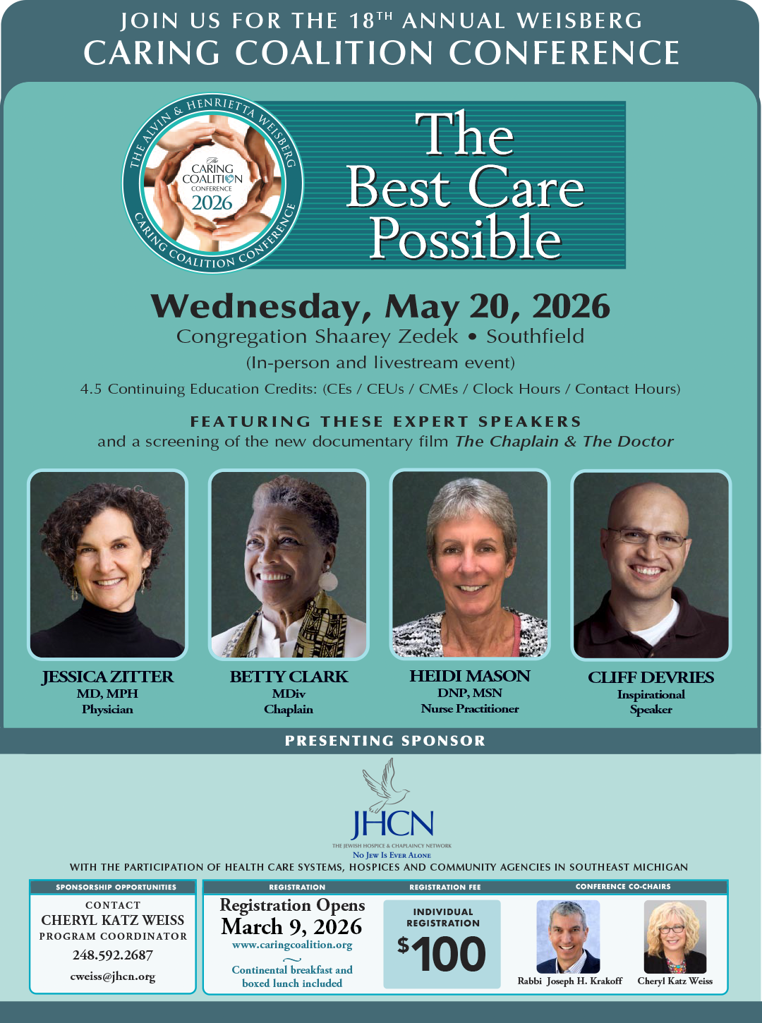 Congregation Shaarey Zedek, 27375 Bell Road, Southfield, MI 48034 or via Livestream